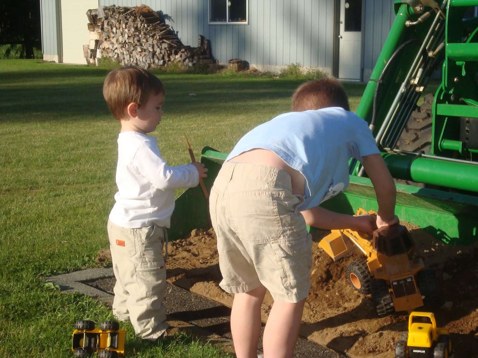 Both boys helped even out the extra dirt in the tractor loader.
